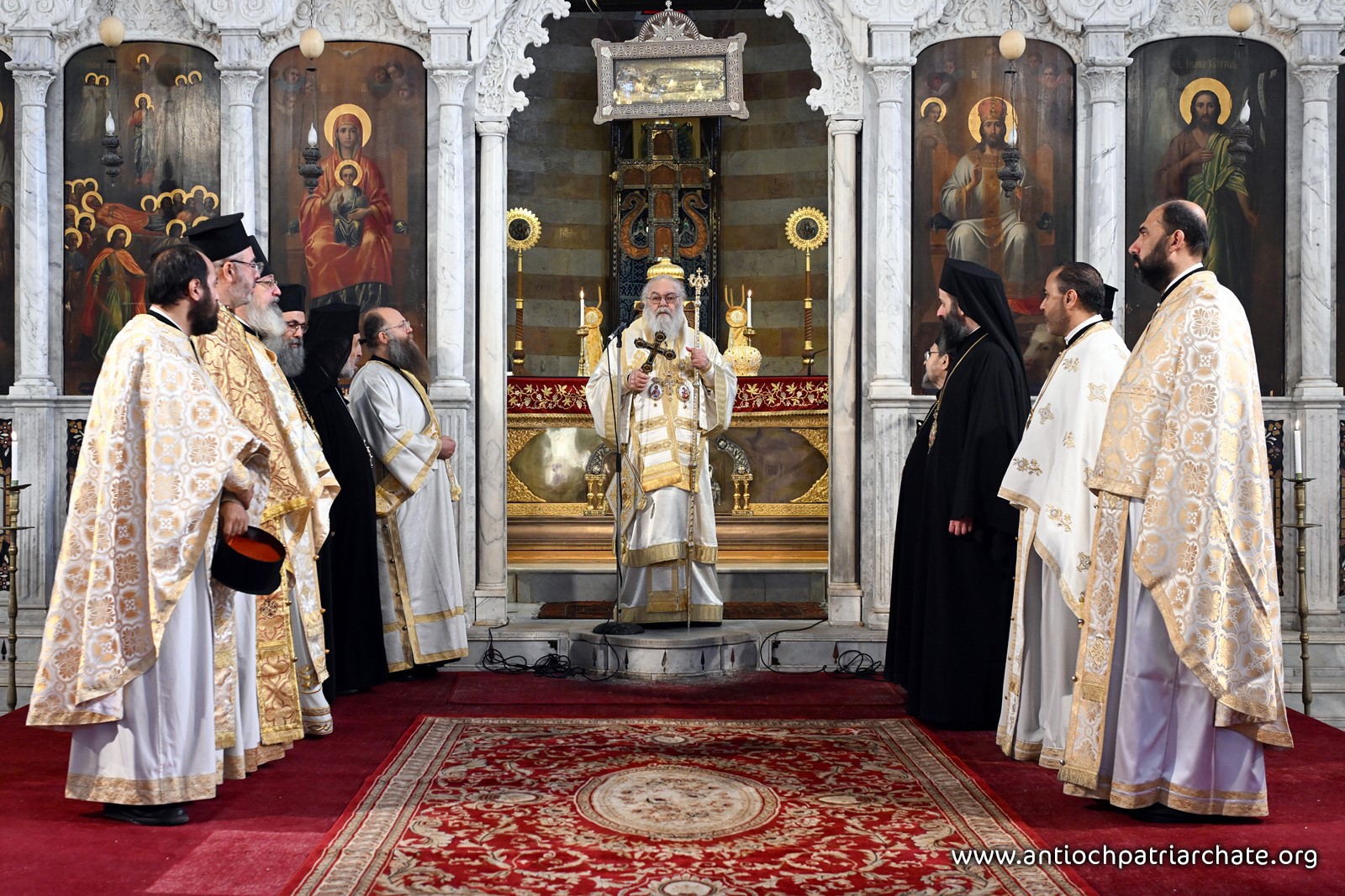 Богослужение возглавил Блаженнейший Патриарх Иоанн в сослужении епископов Сергиопольского Иоанна, Дарайского Моисея, Иерапольского Арсения, Ларисского Моисея, викария Бразильской митрополии Антиохийской Православной Церкви, архимандрита Филиппа и соборного духовенства.