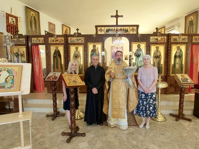 Затем прихожане поздравили архимандрита Филиппа с днём Тезоименитства, вручили букет цветов и пропели многолетие.