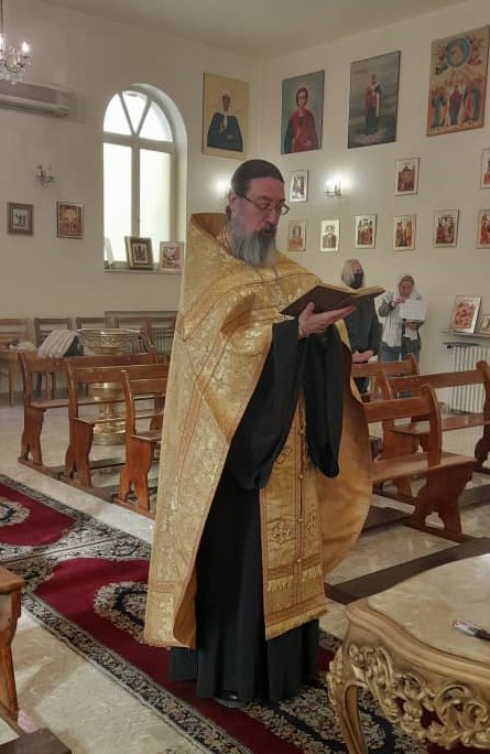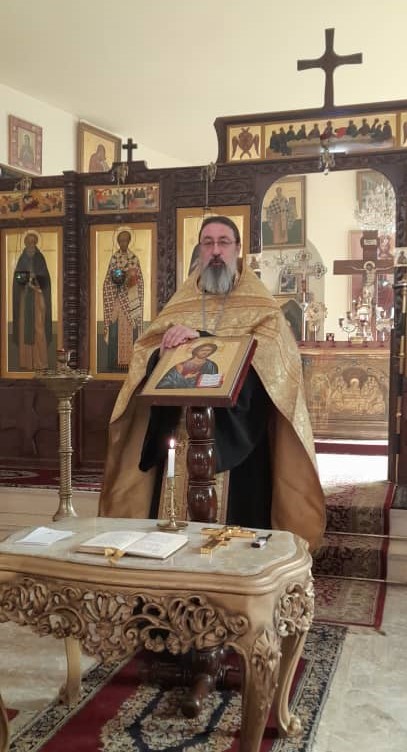 После окончания богослужения архимандрит Филипп тепло приветствовал гостя Представительства и пожелал ему успешного пребывания в Сирии, куда он прибыл для поклонения святыням Антиохийской Православной Церкви.