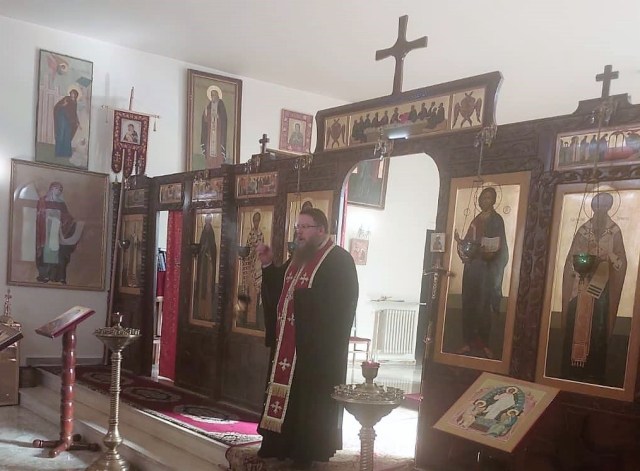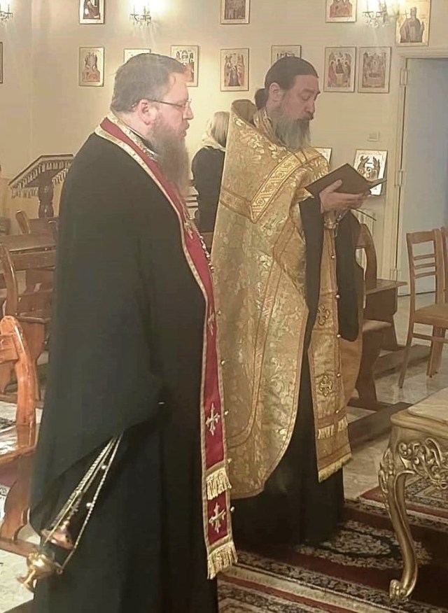 Богослужение возглавил архимандрит Филипп в сослужении архимандрита Серафима (Шемятовского), представителя Православной Церкви Чешских земель и Словакии при Московском Патриаршем престоле.