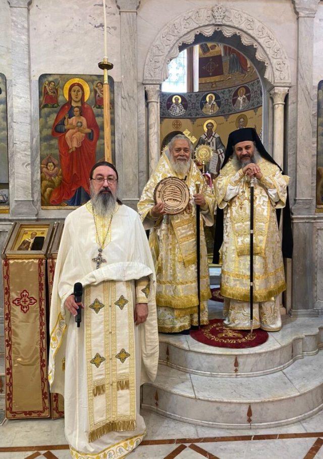 После отпуста Божественной литургии глава Захлейско-Баальбекской митрополии тепло приветствовал митрополита Филиппопольского Нифона, поздравил его с наступающей годовщиной — 34-летием со дня архиерейской хиротонии и подарил ему архиерейский посох.