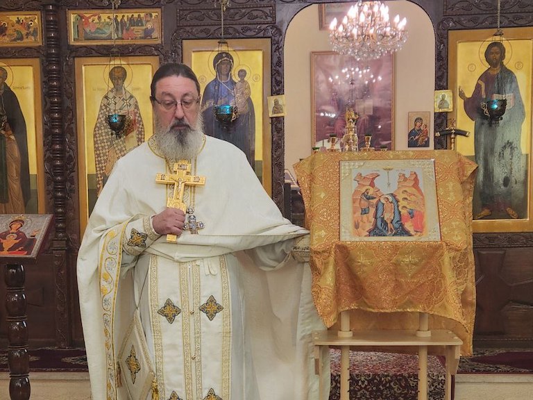 За Божественной литургией молился атташе по вопросам обороны при Посольстве Российской Федерации в Сирийской Арабской Республике полковник Бодрединов Андрей Валерьевич.